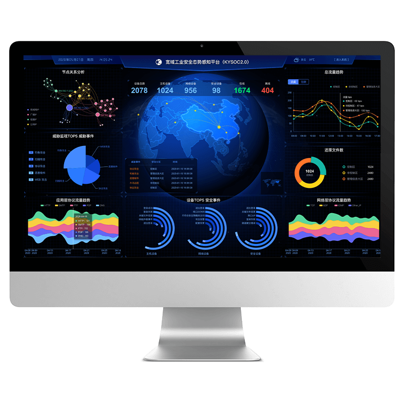 網絡威脅監測:對生產信息化網絡中的攻擊行為、數據流量、重要操作等進行監測審計,實現網絡威脅的態勢感知,也用于事后回溯和網絡分析;